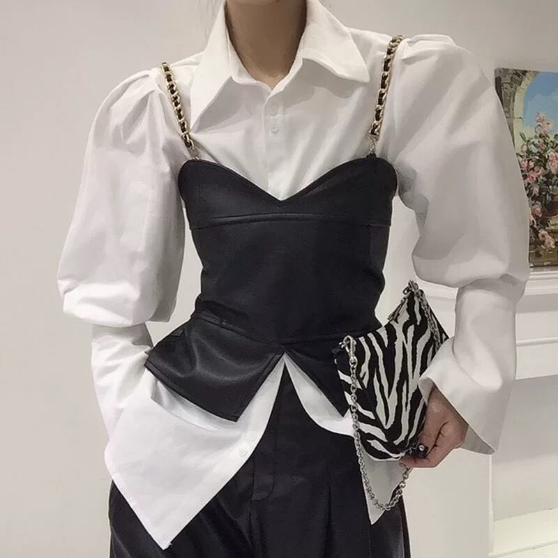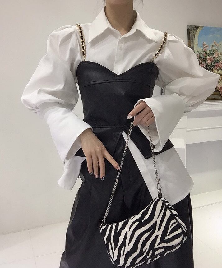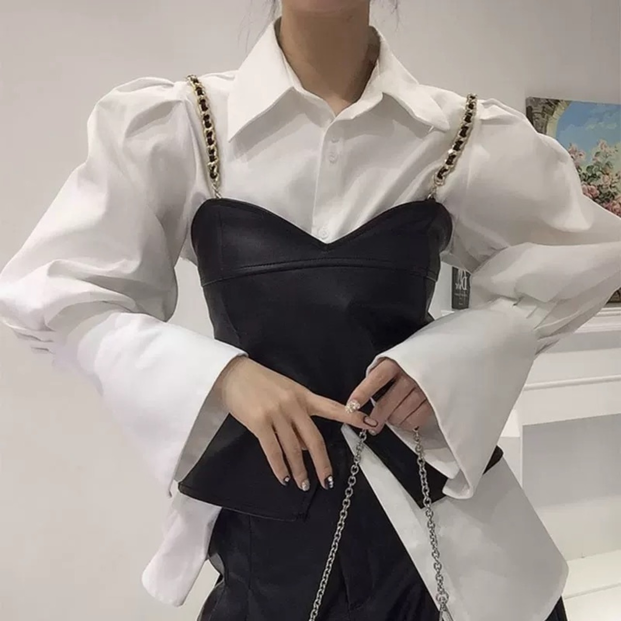 【カラー】ホワイトシャツ+チェーンキャミソール