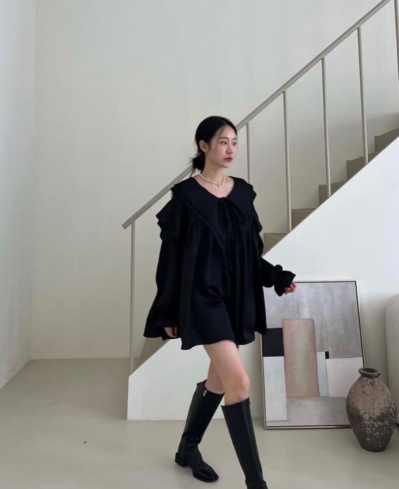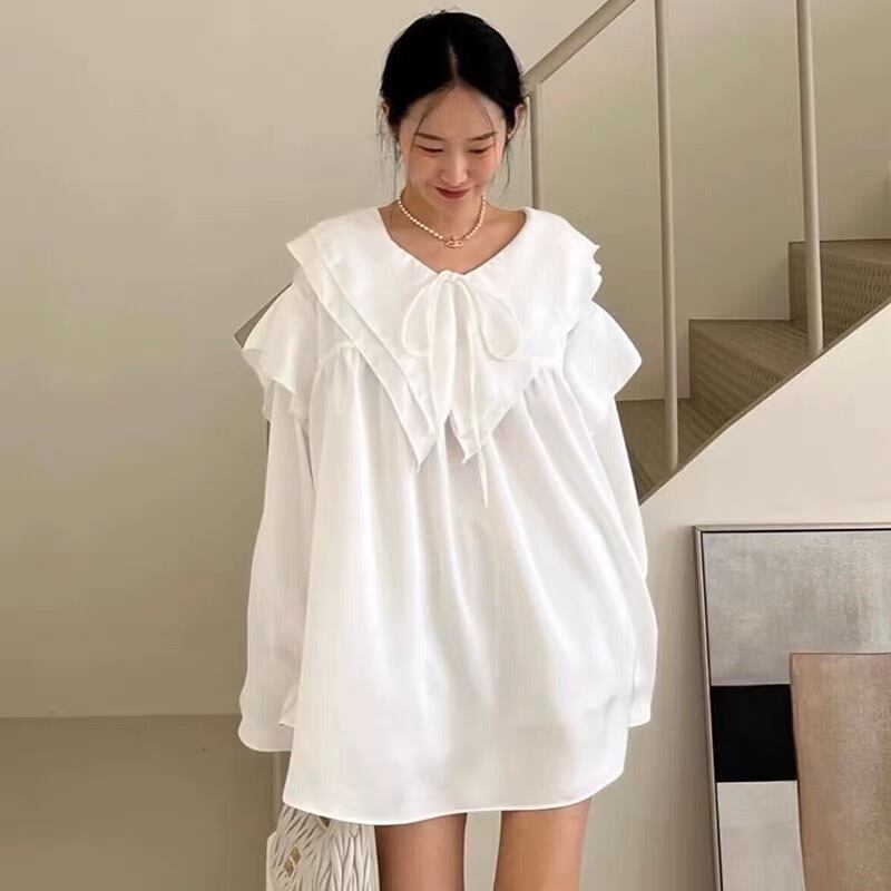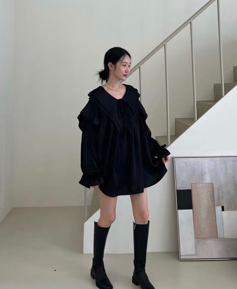 July ビック襟 チュニック ミニワンピース ピンク ホワイト ブラック 韓国系ファッション パリジェンヌファッション 夏服 長袖ブラウスワンピース july23061405 | パリジェンヌ、韓国系ファッション July