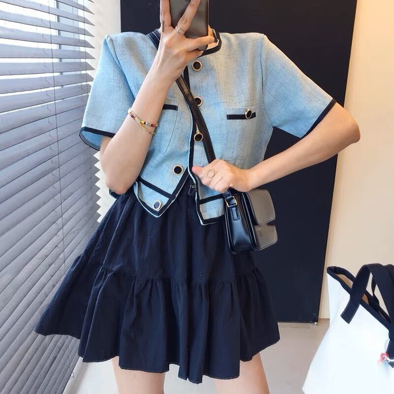 【カラー】水色トップス、ホワイトトップス、ミニスカート