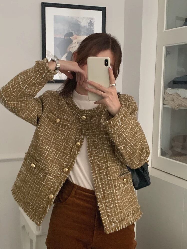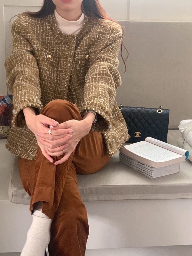July ノーカラーツイードジャケット アウター 2カラー 個性的 オシャレ 韓国系ファッション 流行り レディースファッション 秋冬服 july23102602 | パリジェンヌ、韓国系ファッション July