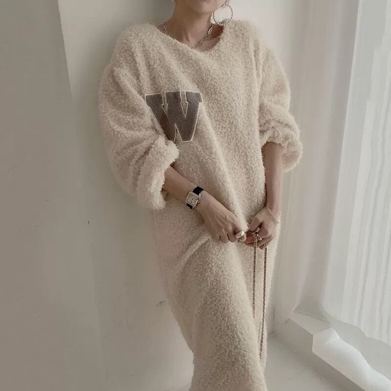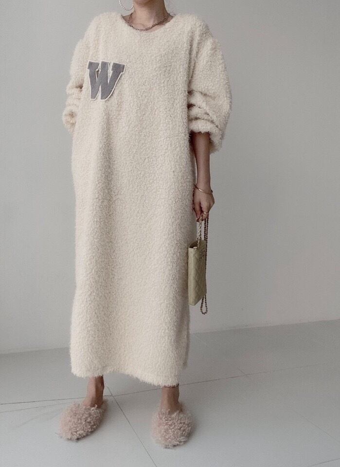 July 裏起毛イニシャルボアスウェットワンピース ボアワンピース 秋冬ファッション オシャレ 韓国系ファッション 流行り レディースファッション 秋冬服 july24010301 | パリジェンヌ、韓国系ファッション July