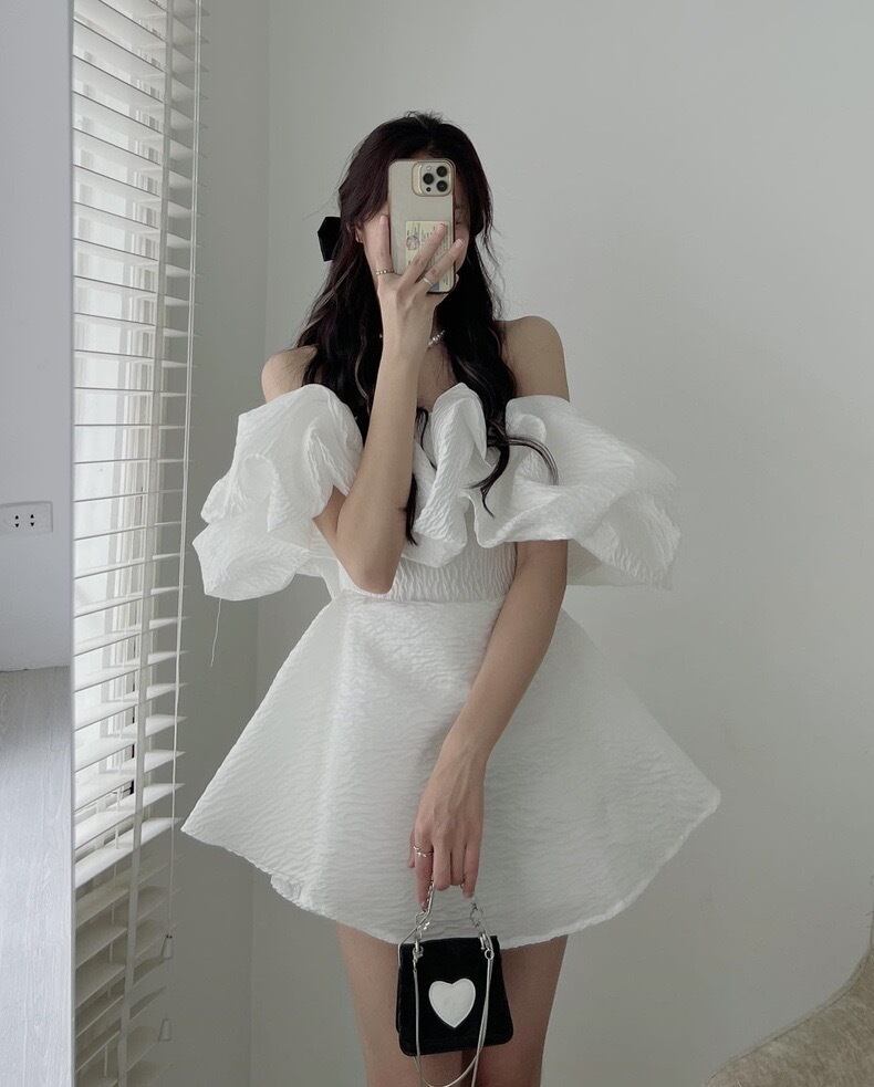 July オフショルダーミニフワンピース デザイナーズファッション 2024春服 個性的 オシャレ 韓国系ファッション 流行り レディースファッション july24041001 | パリジェンヌ、韓国系ファッション July