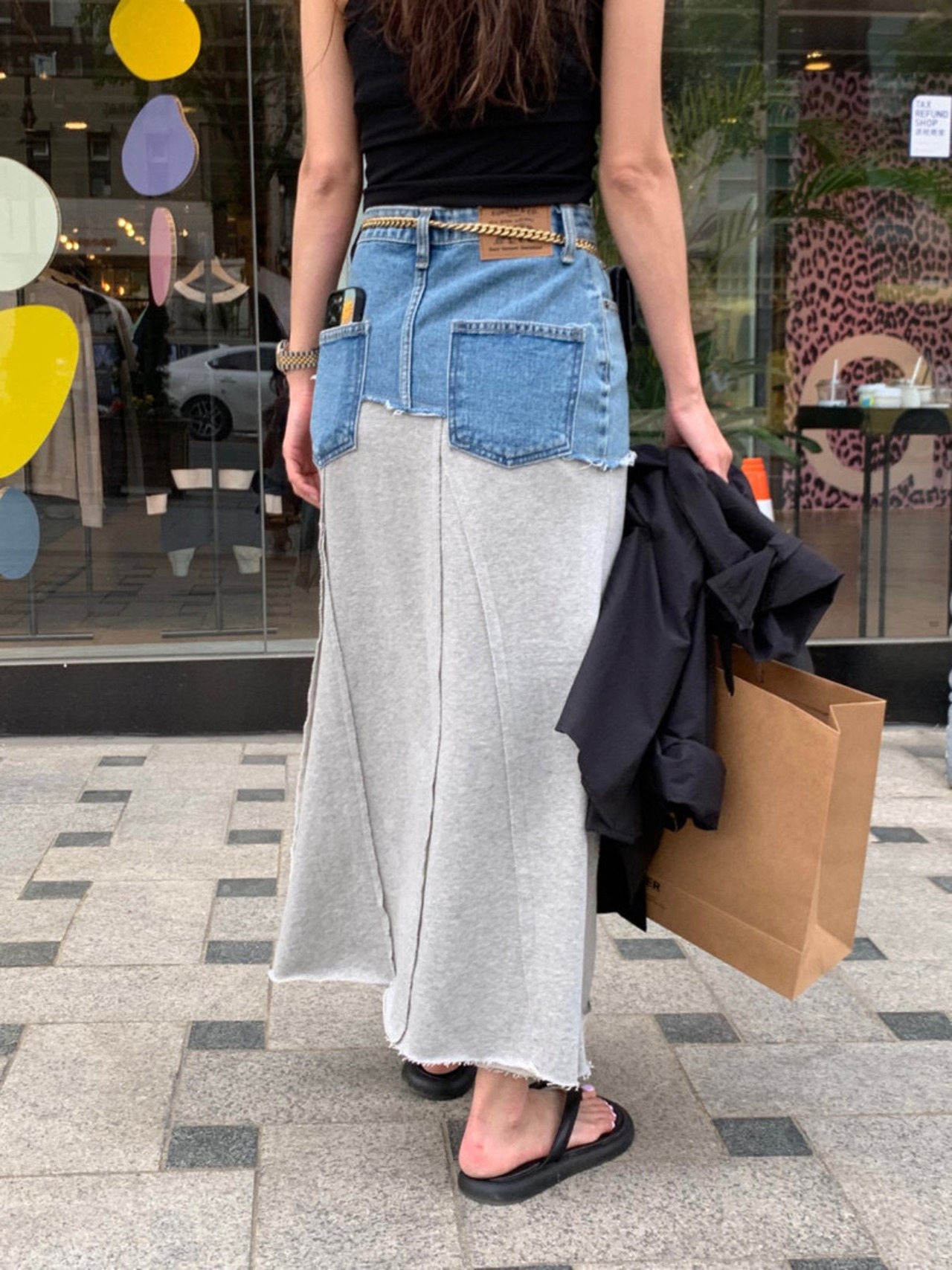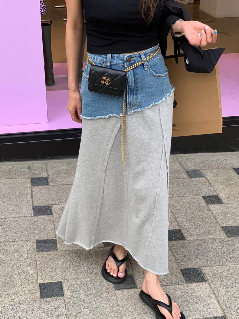 July デニムリメイク風ロングスカート おしゃれ夏服 お揃い 2024春服 個性的 オシャレ 韓国系ファッション 流行り レディースファッション july24072701 | パリジェンヌ、韓国系ファッション July